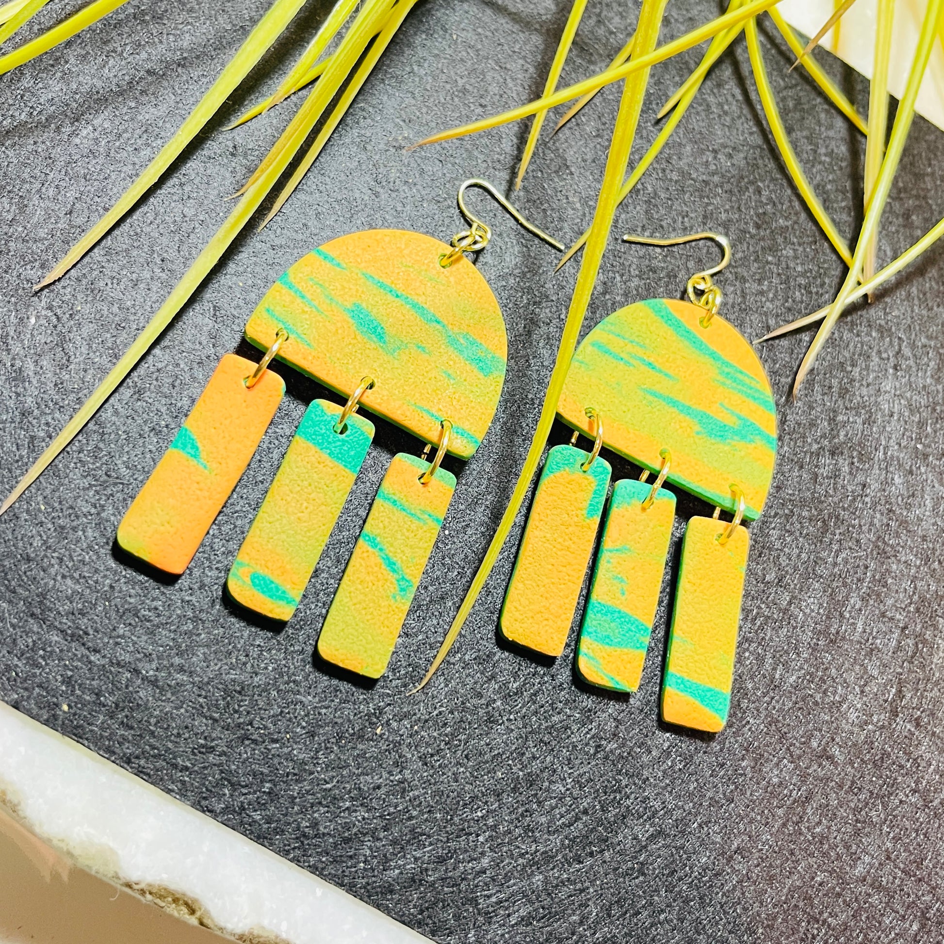 You are purchasing the earrings pictured these are the only ones in this exact design, they are completely unique. Each pair of earrings I make are slow made, the clay is rolled by hand, color mixes are specific to that design, the shapes I use are cutters designed and made all over the world. My designs are inspired by fashion, design, culture, color, experiences & emotions.