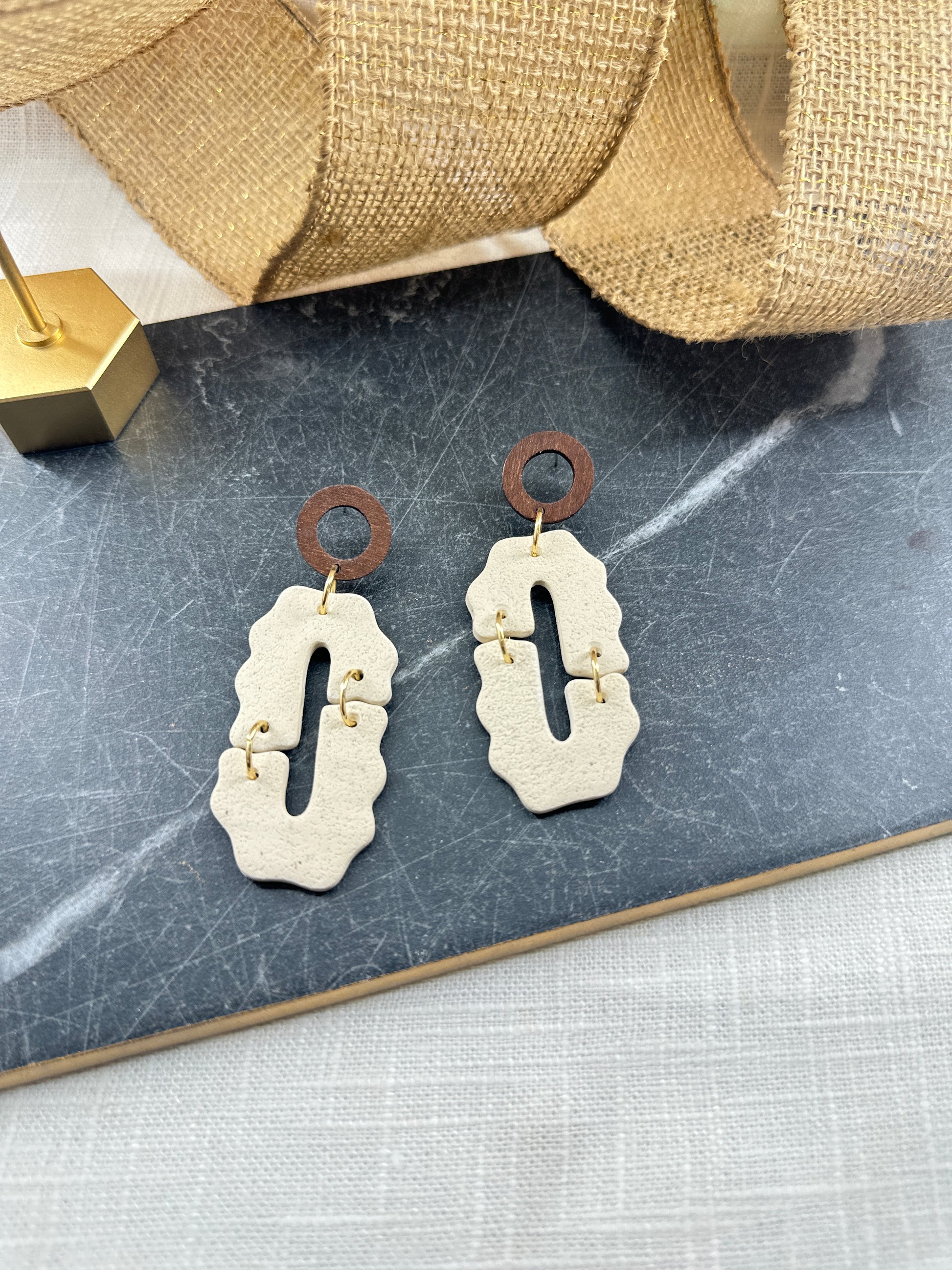 ๐ Crafted with precision, the wood circle posts bring a touch of rustic charm to these earrings, while the cream speckled polymer clay exudes an earthy elegance that's perfect for autumn.